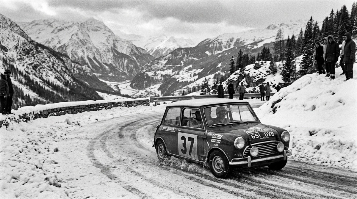 ミニの競技史で最も輝かしいページを飾るのが、モンテカルロ・ラリーでの活躍です。このラリーはアルプスの険しい山岳路を舞台にした伝統の一戦で、当時のヨーロッパで最も権威あるラリーのひとつでした。