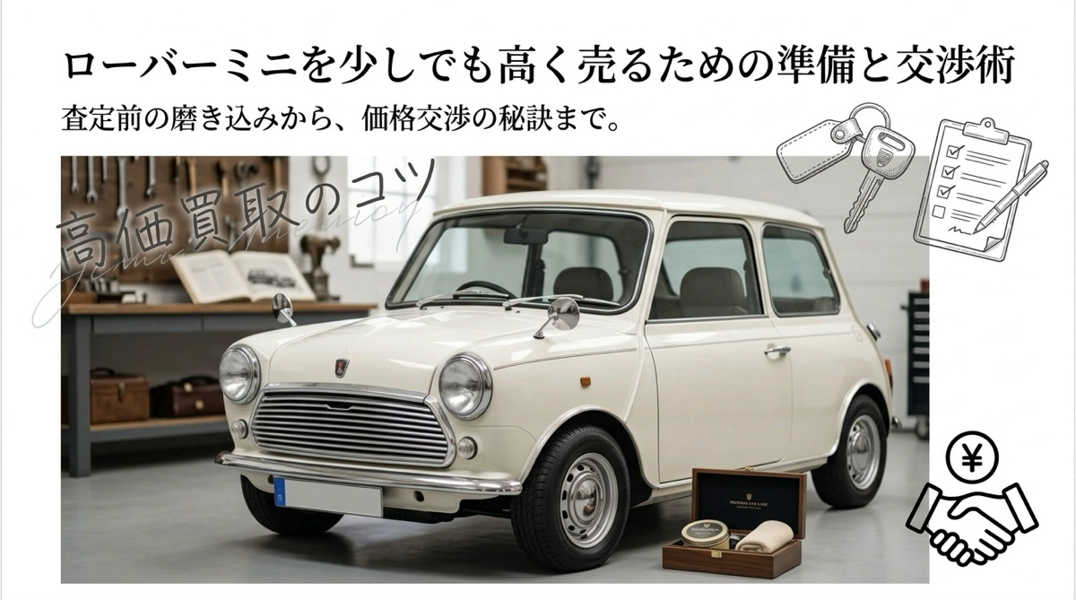 ローバーミニを手放すことを決めたとき、少しでも高く売りたいと思うのは当然です。でも、何も準備せずに売りに出すと、相手のペースで値切られてしまうことがあります。