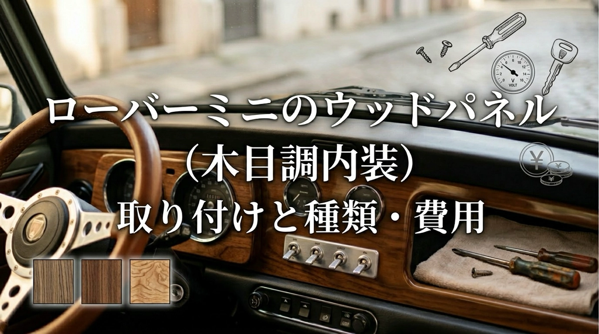 ウッドパネルはローバーミニの内装を大きく格上げするカスタムです。費用や手間は素材や取り付け方次第ですが、まずは木目調プラスチックのダッシュボードパネルから試してみることをおすすめします。ミニに乗るたびに木目が目に入るのは、シンプルながら毎回小さな喜びになりますよ。