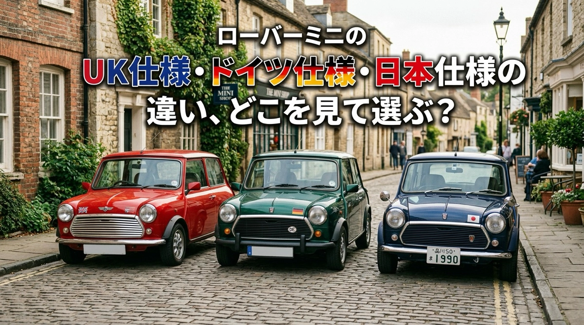 ローバーミニのUK仕様・ドイツ仕様・日本仕様、それぞれに個性があります。右ハンドルで安心感を重視するならUK仕様か日本仕様、装備の充実度を優先したいならドイツ仕様も選択肢に入ります。ただし左ハンドルの日常的な使い勝手は、乗ってみて初めてわかるものですので、実際に試乗する機会を作ることをおすすめします。