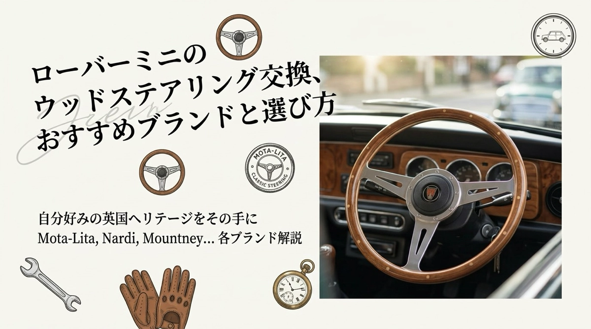 ウッドステアリングへの交換は、ローバーミニのカスタマイズの中でもコストパフォーマンスが高く、乗るたびに満足感を感じられるひとつです。取り付けのポイントさえ押さえれば、DIYでも十分挑戦できます。